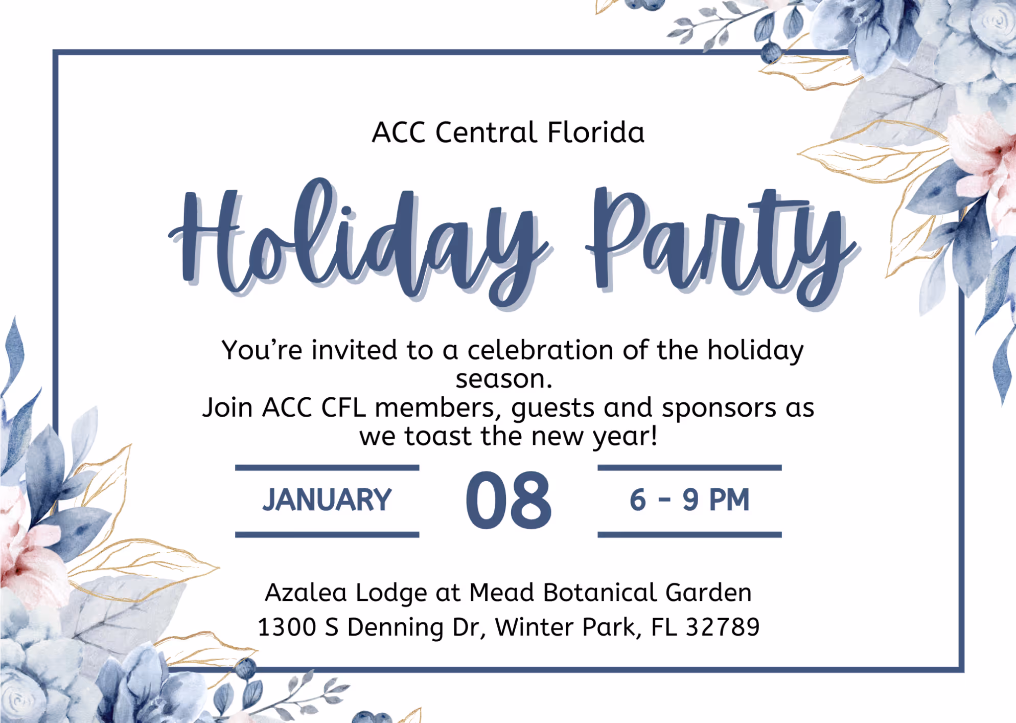 Join ACC Central Florida members, guests and sponsors for a celebration at the Azalea Lodge at Mead Gardens, sponsored by Consilio.