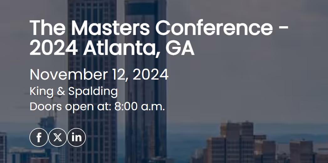 Organizer WebsiteJoin The Master’s Conference in Charlotte on Tuesday, November 12, 2024, from 8:00 am – 5:00 pm. Master’s is the legal technology conference that brings together industry experts to share knowledge and explore topics and solutions tailored specifically to their everyday challenges.